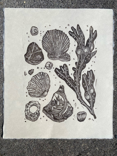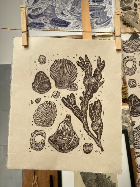 Restronguet Treasure is a limited edition of 100 prints handprinted onto off white Japanese paper, the print is a smallee print just short of an A4 sheet of paper-This paper is considered to be vegan as there is no sizing agent/wet strengthening agent/aluminium sulphate included in the paper, it is bleached by natural means and is compossed mostly of Gampi fibres, in raw umber ink (also vegan)